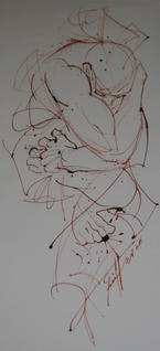 Título: Desnudo en Movimiento Medidas: 20 x 50 ctms Técnica: Tintas Sanguina a la Plumilla Año: 2008 |